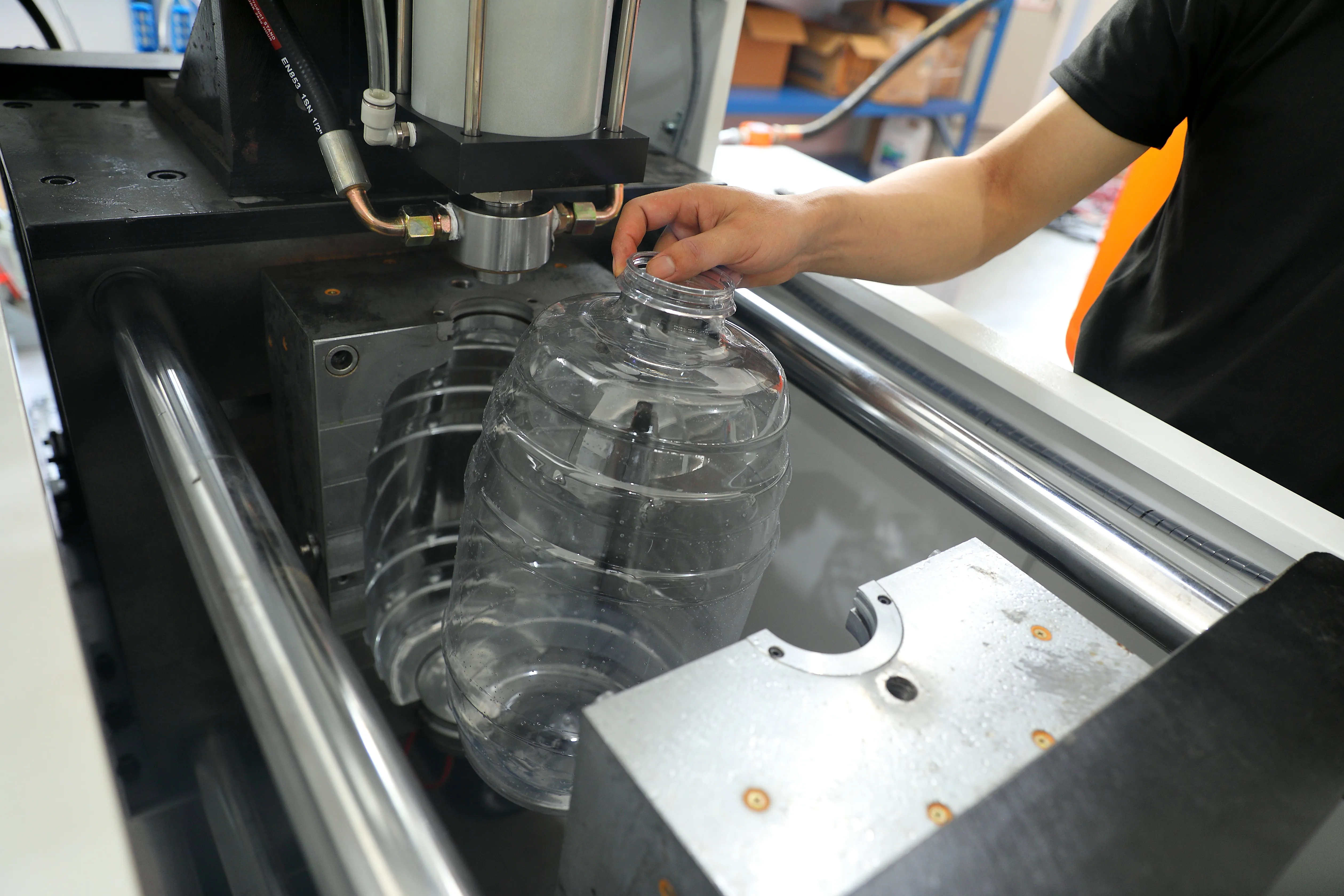 - Unmatched Flexibility and Manual Operation: The process requires an operator to manually place a preform into the machine and remove the finished bottle. This hands-on approach allows for direct quality control and makes the machine incredibly versatile. It is perfect for producing small batches, prototyping new bottle designs, and special orders.