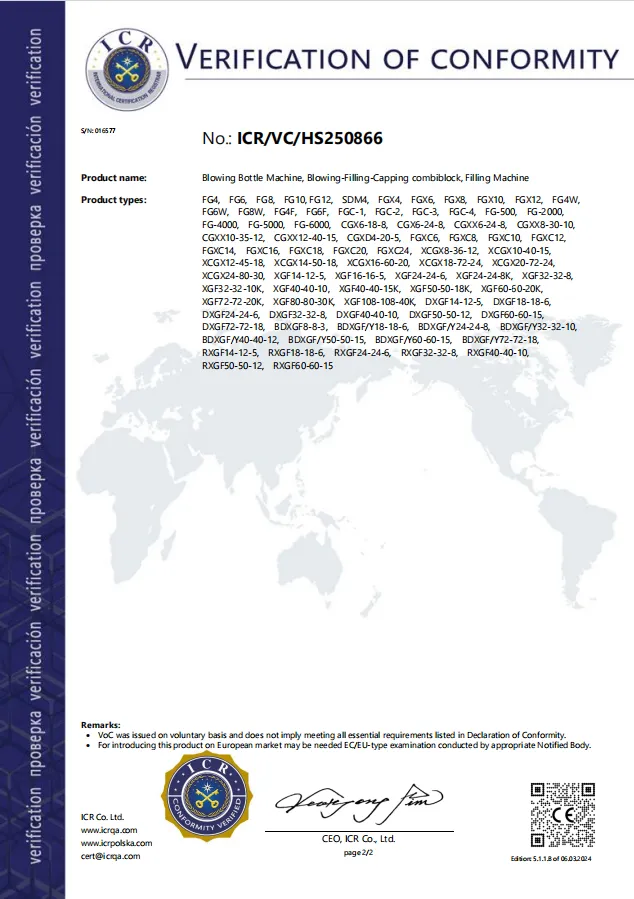 With more than two decades of industry experience, we specialize in the in-depth research and manufacturing of high-speed PET blowing and bottling lines, reinforcing our position as a leader in the field. Our equipment holds hundreds of patents, and we have obtained CE and ISO 9001 certifications, ensuring fully guaranteed product quality. Backed by a robust service system, we are committed to delivering exceptional efficiency and flexibility for our valued customers.